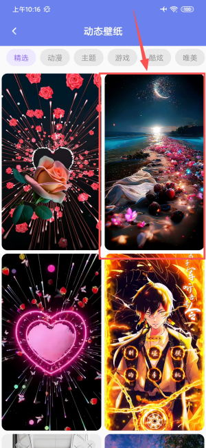 2、进入动态壁纸板块,选择炫酷风格壁纸查看详情。