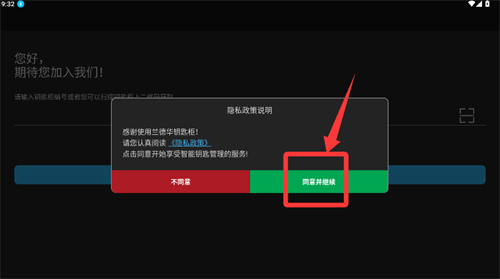 1、首先在隐私政策弹窗中点击同意并继续,确认接受相关条款内容。