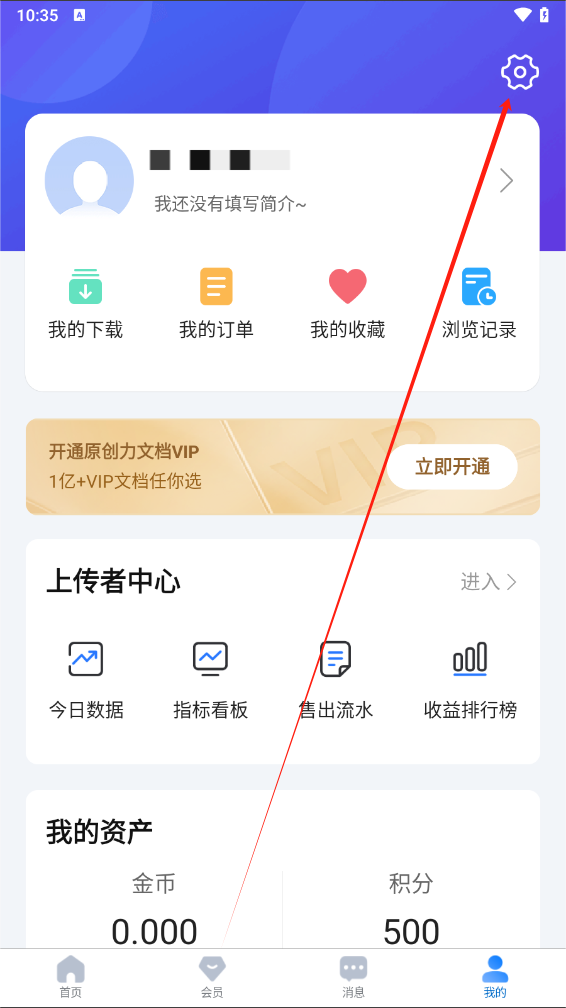 1、下载原创力文档App打开并登录软件,点击我的;