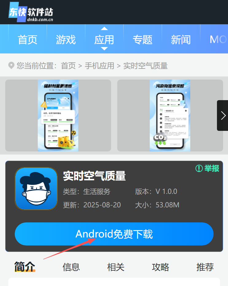 1、在东快软件站中下载实时空气质量app