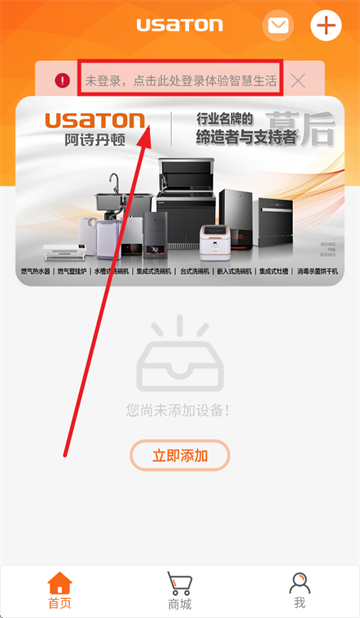 进入首页后点击未登录,点击此处登录体验智慧生活