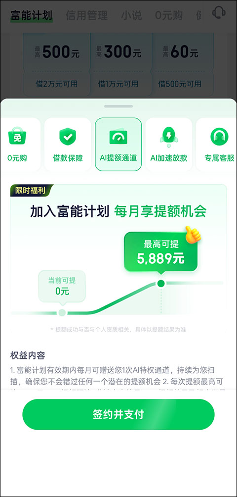 4、参与【富能计划】,持续完善信用行为,可增加每月提额机会与利率优惠概率。