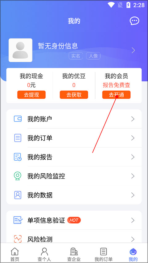 2、点击页面顶部【去开通】按钮,进入会员服务页。