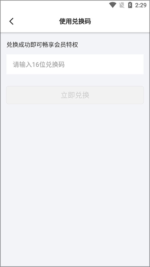 4、准确输入16位兑换码,点击【立即兑换】,会员权益即时生效。