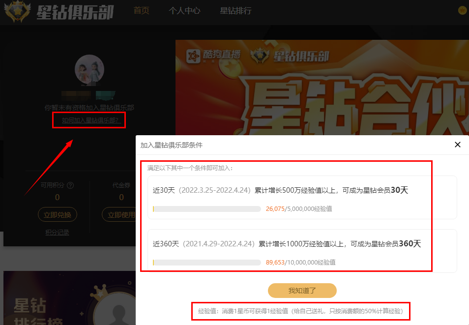 平台依据用户近30日或近360日财富经验值增长值,自动授予对应期限的星钻会员资格: