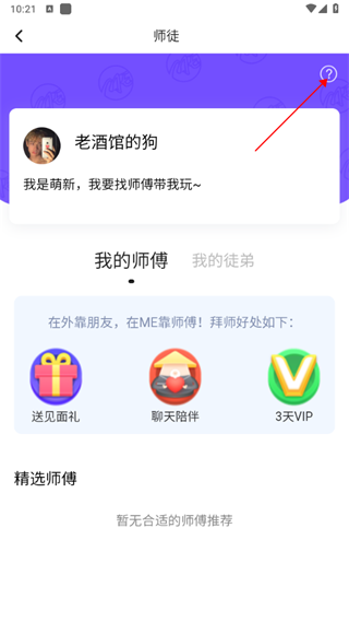 2、在师徒详情页右上角点击“?”帮助按钮,展开相关说明与操作指引。