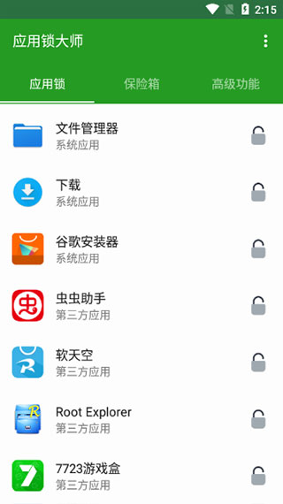 2、提供清晰的应用锁状态面板,实时查看各应用的锁定状态与启用时间;