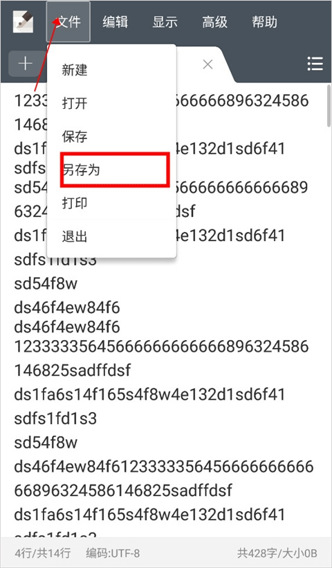 2、将我们要转换的文字输入完成后,点击上方工具栏的“文件”,点击“另存为”。