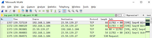 tcp.srcport == 80 // 仅显示源端口为80的TCP包