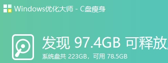 点击“C盘瘦身”功能,系统将自动扫描C盘中的冗余文件(包括系统缓存、临时文件、无用更新等)。扫描完毕后,点击“一键瘦身”即可安全释放C盘空间,无需手动判断文件重要性。