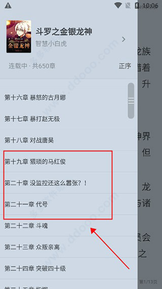 4、在章节列表中选择想阅读的章节。