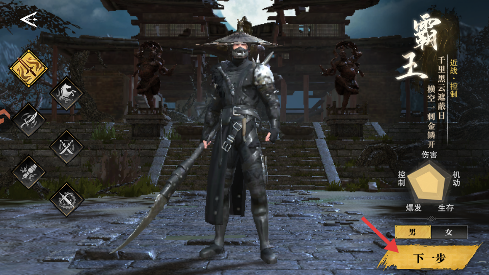 1、下载打开斗笠江湖手游官方版,刚进入游戏,先选择自己角色的属性技能和性别。