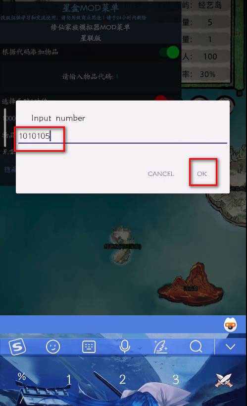 5、以聚灵丹为例,在输入框中键入代码“1010105”,点击右下角【OK】确认。