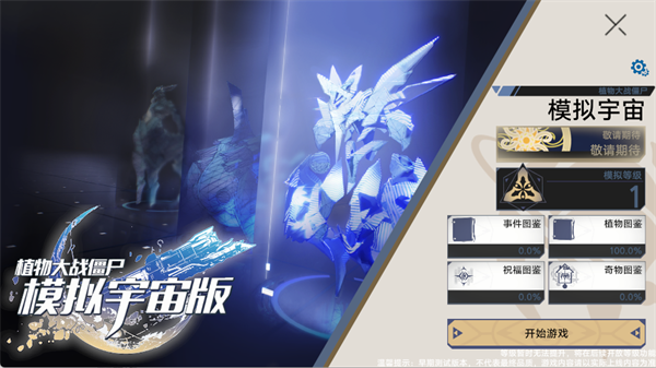 2、主界面可查阅【事件图鉴】【植物图鉴】等资料;当前部分模式仍在开发中,确认准备就绪后,点击【开始游戏】开启首次冒险。