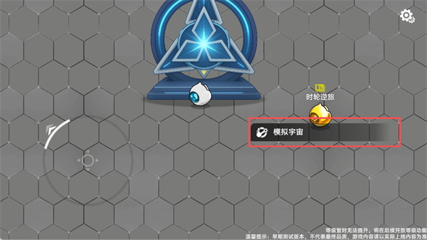 1、启动游戏后,使用虚拟摇杆移动角色至【模拟宇宙】入口,点击进入主界面。
