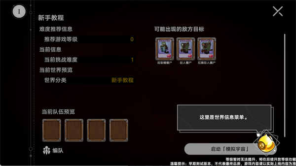 4、进入世界后,左上角实时显示世界信息与当前难度;点击【编辑队伍】自定义植物阵容,配置完成后点击【启动宇宙模拟器】正式开战。