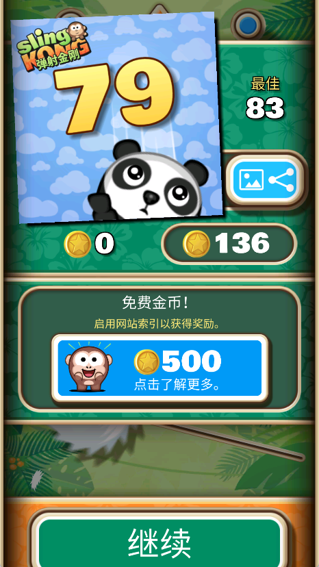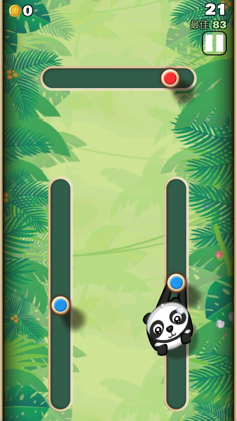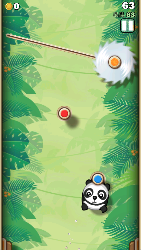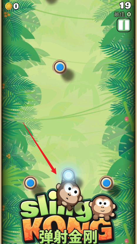 1、游戏开始时,玩家操作猴子吊挂在木桩上,通过调整弹射角度和力度,向其他木桩上发射,目标是保持吊挂,避免掉落。