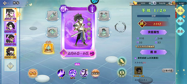 3、自由卡牌搭配:玩家可根据个人喜好与战局需求,灵活配置侠客阵容,应对各类敌人挑战。