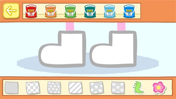 3、为佩奇挑选一双时尚的金靴子——上方可选择颜色,下方则提供多种图案与花纹组合;