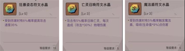 暴击战魂流:三角符文石选取生还者和孤狼符文提供最大攻和暴击几率,其中孤狼符文的暴击几率为固定属性没有成长性一直都会是1.5%,因此孤狼符文不用刻意去提升等级。六角的符文水晶也推荐的是狂暴姿态,魔法盾和亡灵召唤。