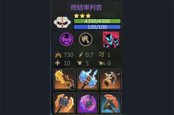 终结审判官是战士流中很强势的存在,自身的恶魔种族能为他提供额外50%的纯粹伤害,初始攻击力115点,虽然削弱过,但生命值依然有950点,自带5点护甲。而他的技能“谴责”就更厉害了,可以沉默敌方1个棋子10秒,并且每秒受到60点的纯粹伤害,而这些还仅仅是1星的能力。到达3星后,终结审判官的能力将会发生质的变化,配合一些强力装备,攻击力直接提升到730点,战士流能有他,相信吃鸡也就变得简单了吧。