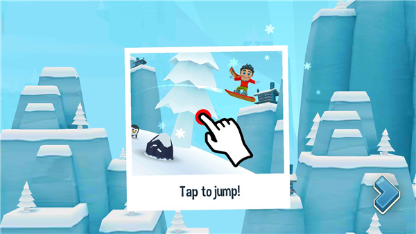 2、点击屏幕触发跳跃,不同坐骑与滑雪板会显著影响腾空高度与飞跃距离。
