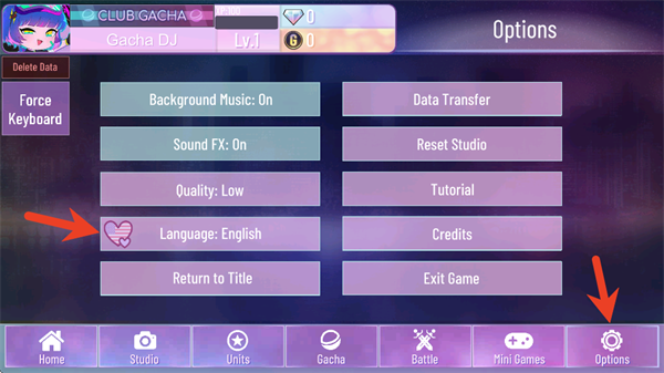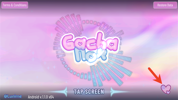 1、在游戏启动界面,点击右下角的心形图标进入设置区域。