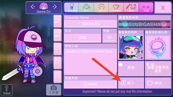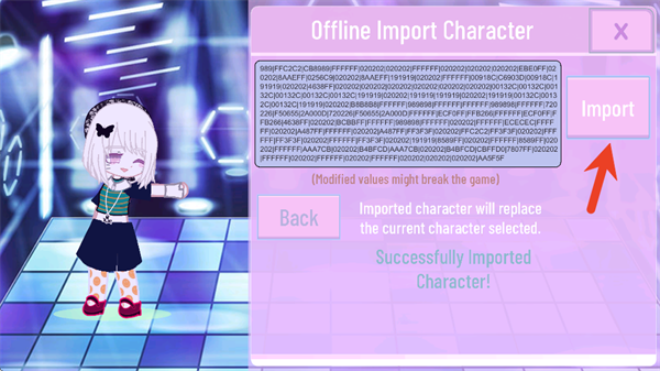 4、在弹出的输入框中粘贴人设代码,点击“Import”即可成功载入角色数据。