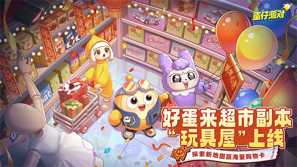 惊魂寻宝队*好蛋来超市*副本迎来全新「玩具屋」版本,新增“玩具区”副本区域,以及全新怪物“熊兔气球”与四款宝物:“eggy游戏机”、“飞船模型”、“玩具卡车”和“蛋仔岛小飞机”,带你重温那段停驻在春日里的纯真梦境。