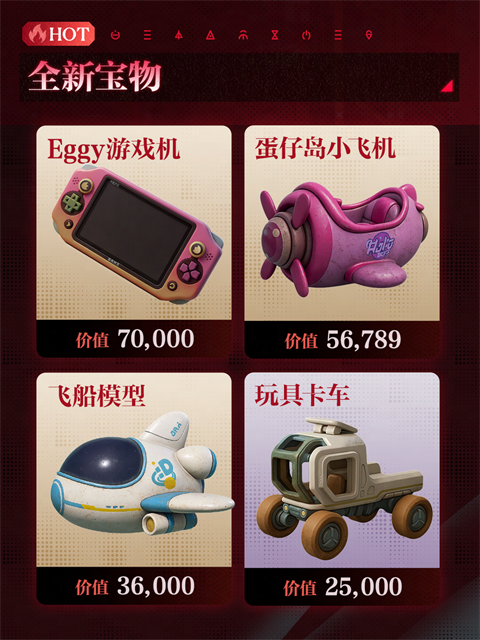 “Eggy游戏机”、“飞船模型”、“蛋仔岛小飞机”与“玩具卡车”四款全新宝物现已上线,它们静静散落在角落,封存着无忧无虑的童年记忆——令人欣慰的是,小时候省吃俭用买下的玩具,如今还能换回一笔可观的“零花钱”!