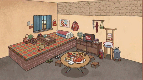 1、仿佛穿越回80年代,进入充满年代感的小屋,点击下方箱子取出家具进行布置
