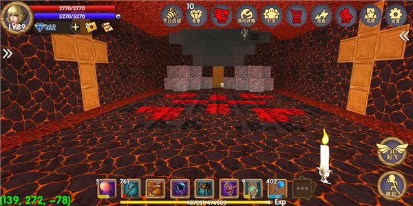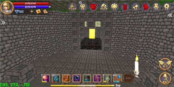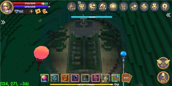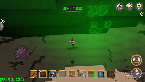 进入游戏时选择“创造模式”新建世界,初始小屋为固定出生点。熟悉游戏的玩家都知道,天空城通常需后期高战力才能抵达。但在创造模式中,无需升级或准备,点击飞行即可直飞云端。当屏幕左下角Z轴坐标接近200时,便已抵达天空城。