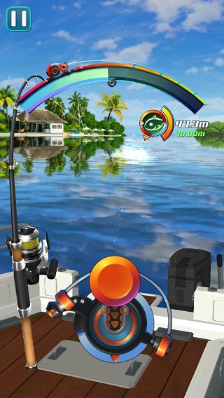 - 通过拖动按钮对鱼施加拉力,逐步将其拉近;