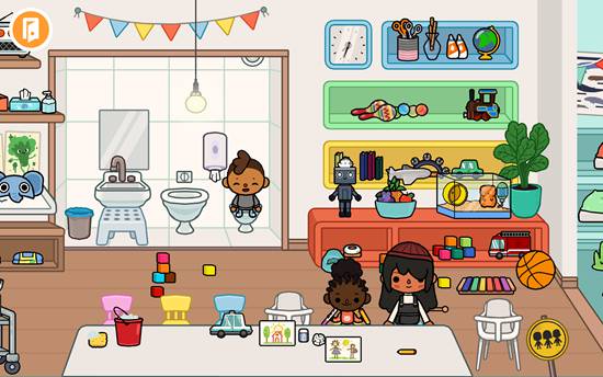 点击左上角退出按钮,返回家中,会发现屋内也有不少小朋友。同样,你可以随意移动人物或物品。