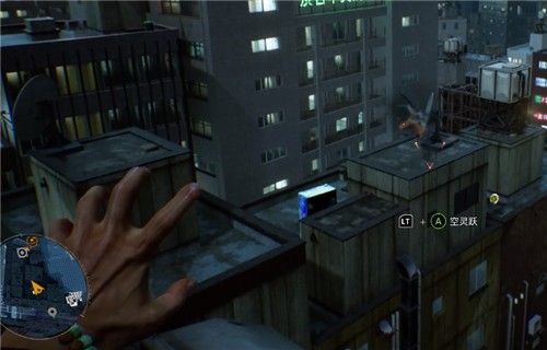 2、直到出现天狗虚影后再起跳,就能空灵跃了。瞄准对位置了会自动召唤天狗,斜屋顶和平楼里面都不能召唤。