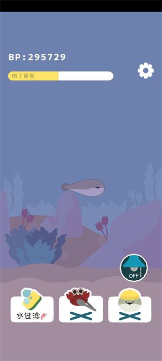 3、点击下图红框所示按钮,可净化水源——保持水质清洁对小鱼的成长至关重要;