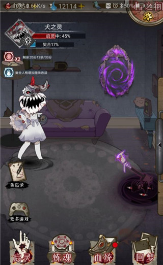 6、当启灵值满格时,点击“回家”按钮返回主界面;