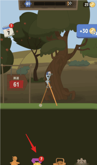 这个游戏是以踩高跷的形式行走,中间设有障碍,到达终点即可通过。