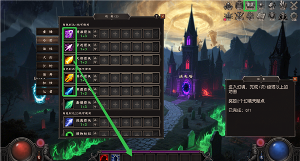 5、点击【技能】,玩家可拖动各主要技能至下方技能栏进行装配。