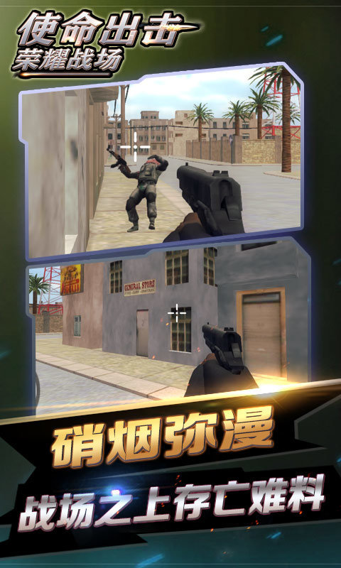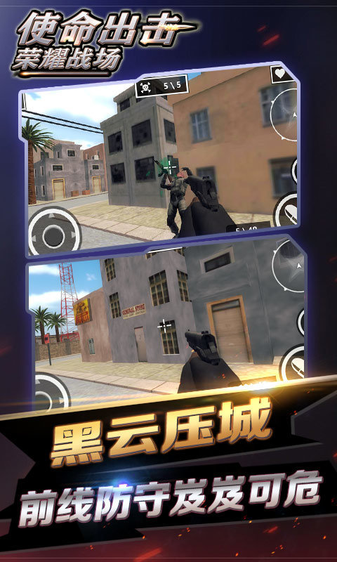使命出击荣耀战场,游戏的玩法与穿越火线有点相似,玩家们经过草堆,或者拐角处时一定要小心,有可能会被掩藏在暗处的敌人袭击,游戏的画面十分的真实,画面也很清晰,拿起手中的武器,战斗即将开始,完成任务获得属于你的荣耀。