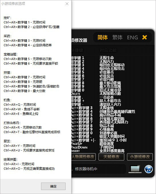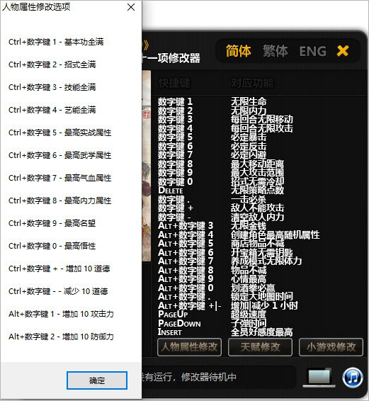3、双击运行修改器主程序,待游戏界面加载完成后,即可按需启用对应热键功能。