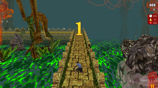 游戏延续《神庙逃亡》的经典跑酷框架,操作简单却节奏紧凑,上手容易但挑战十足,保留了原作的流畅感与紧张感。