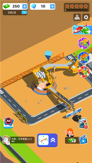 开矿当老板最新版是一款轻松有趣的采矿模拟经营手游,采用清新卡通画风搭配放置玩法与舒缓背景音乐,为玩家营造出沉浸又休闲的游戏氛围。在游戏中,你将化身矿场老板,通过开采煤炭获取收益,并不断升级挖掘机、货车、叉车、传送机容量等关键设施,提升整体采矿效率。随着资金积累,还能解锁更多矿区,逐步扩张商业版图。更贴心的是,游戏支持雇佣专属经理协助运营——他们自带加成Buff,可实现开采效率翻倍,大幅减轻你的操作负担,让你轻松迈向“开矿大亨”的巅峰之路。
