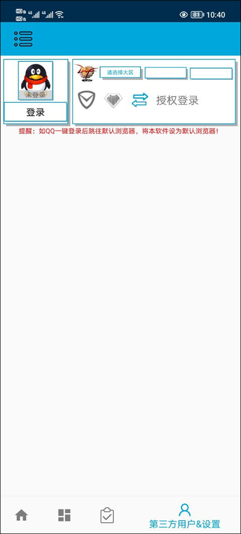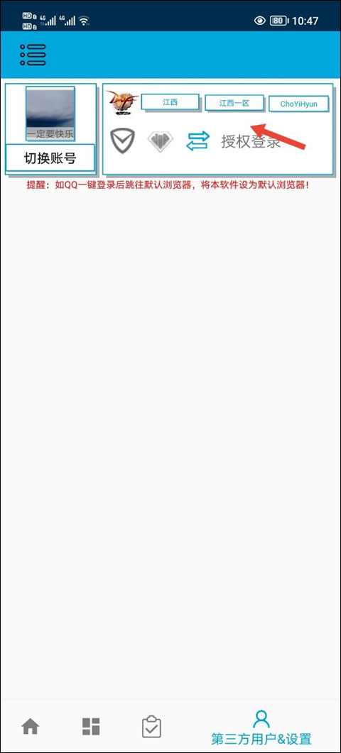 8. 登录后选择对应游戏大区及角色信息。