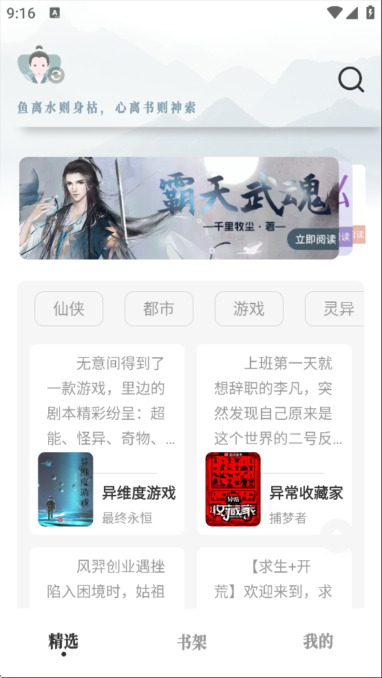 旷野书屋app是一款最近才上线的手机免费阅读软件,各种题材类型的小说应有尽有,极具全面化的书籍类型,在线个性化的推荐功能,免费畅享阅读小说,惊喜多多等你来!