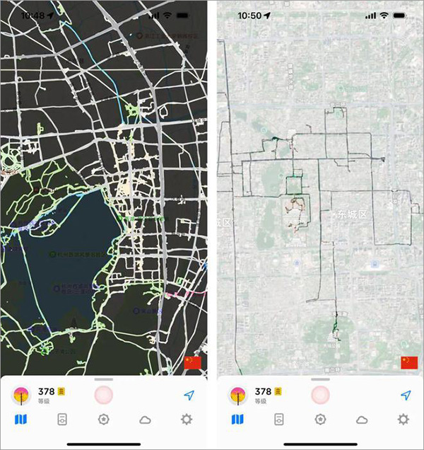 这款软件是第一个将真实世界地图与迷雾概念相结合的应用。应用的主页面就是一张世界地图,我们可以通过手指捏和放大缩小这张世界地图,在地图上的路径也会同步变化。在后来推出的各种同类型应用中,世界迷雾的缩放变化是最流畅平滑的,这也是我非常喜欢这款应用的原因。