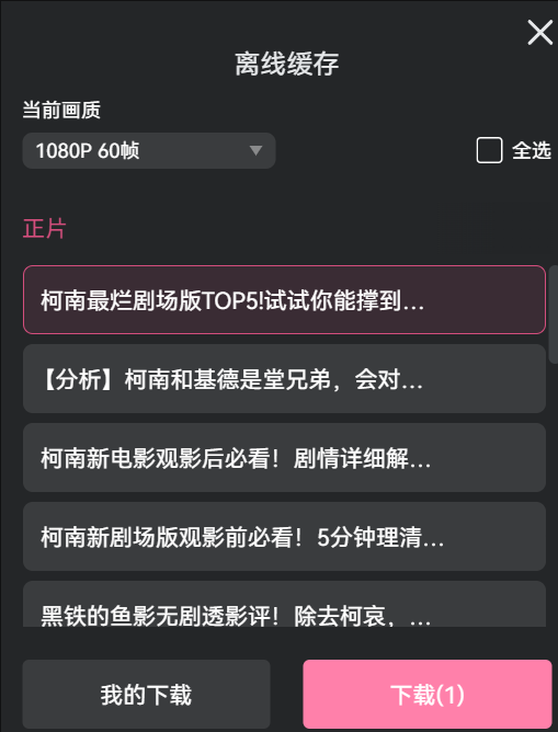 视频缓存操作:进入目标视频播放页→点击右侧【缓存】按钮→选择所需画质→点击【下载】即可完成本地存储,支持离线观看。