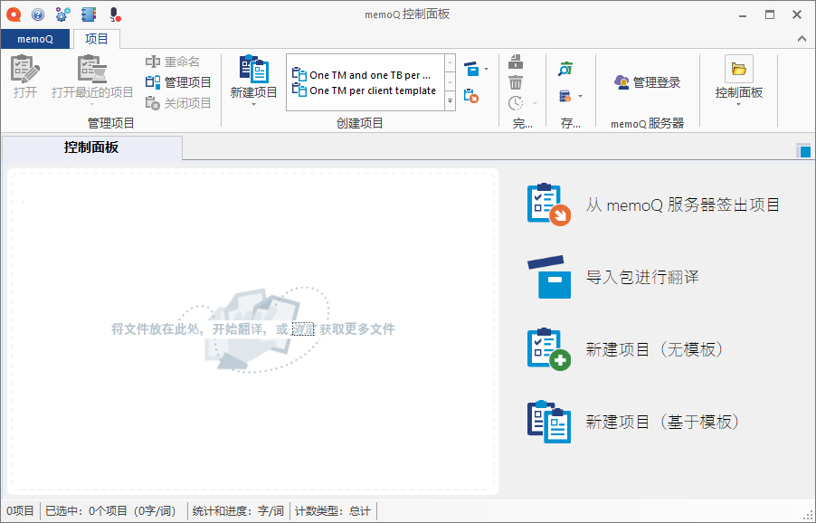 点击菜单栏【文件】→【新建项目】,或直接点击主界面右侧【新建项目(无模板)】按钮。填写项目名称、设定源语言与目标语言,并按需配置项目路径与权限设置,进入下一步。