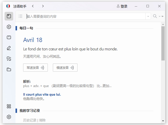 法语助手电脑版是一款专为中文用户打造的权威法语学习工具,以专业词典为核心,深度融合法汉、汉法、法法、法英四语种词典,集成动词变位查询、真人发音、智能输入、生词本管理等核心功能。界面简洁直观,操作流畅,全面适配Windows 10与Windows 11系统,是法语学习者、备考者及法语工作者日常查词、精读、写作与口语训练不可或缺的高效助手。