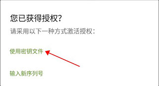 3、授权方式请选择【使用密钥文件】,从本地存储中选取合法授权文件(.key格式)。